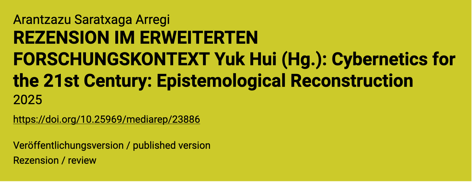 Rezension im erweiterten Forschungskontext: Yuk Hui (Hg.): Cybernetics 21st Century: Epistemological Reconstuction